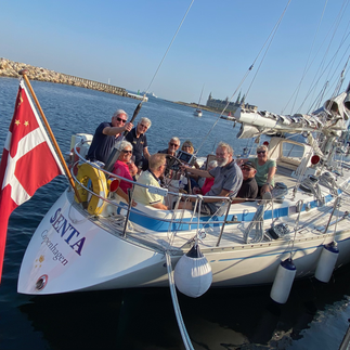 Videre til Helsingør, hvor sejlene kom op i en smule vind fra øst. Vi blev 20 til en fortryllende aften i Ålsgårde hos Johanne og Kenneth med masser af bobler, indisk buffet og panoramaudsigt over Øresund inklusive lokal kapsejlads. TAK, TAK!